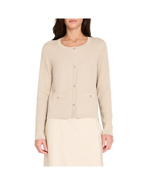 | Characteristics of goods | Color: natural Product details: Goldtone bow buttons sweeten the look of a crewneck cardigan infused with metallic threads that provide the piece with soft shine. | ||