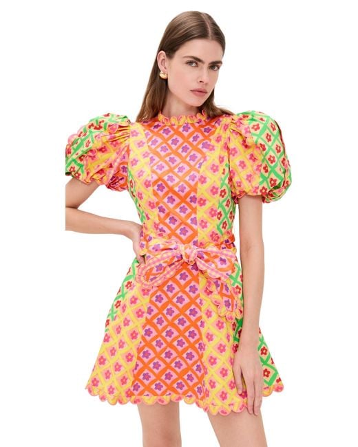 | Characteristics of goods | Shell: 97% cotton/3% spandex. Imported, China. Mock neck. Dry clean.0cm, from shoulder Color: orange Mini length. On-seam side pockets. Lined. Measurements: Measurements from size XS Length: 33in / 84. Hidden zip at back and optional tie at waist. Product details: Fabric: Mid-weight stretch weave. Short puff sleeves. Floral print and scalloped edges. | ||