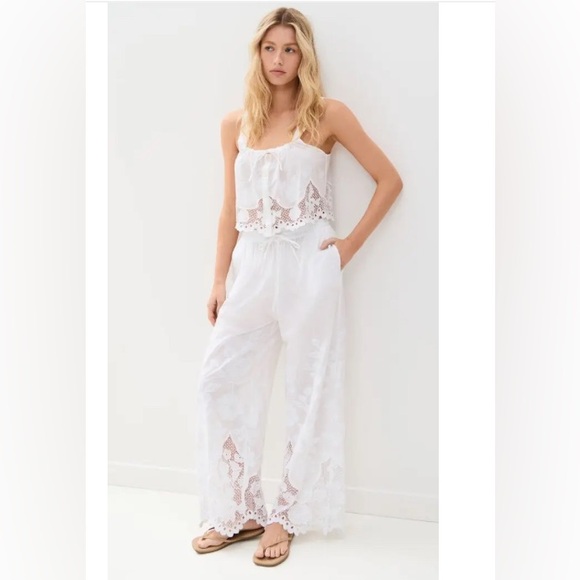 | Characteristics of goods | B51 With a casual fit, embroidered broderie detail and a perfect match with the Flora Tank, this is beach attire at its finest.Crafted from 100% Organic Cotton with embroidered broderie detailing. Inspired by vintage beachwear, Flora is a wide leg drawstring pant. | ||