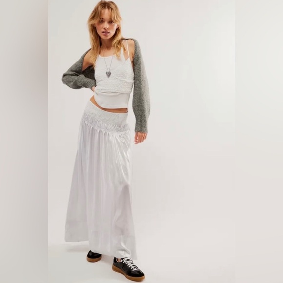 | Characteristics of goods | Turn heads in this so special set featuring a super cropped, smock-adorned top and coordinating high-rise, tiered maxi skirt for the ideal done-in-one look no matter the occasion. New without tags, excellent condition and never worn. Size Large top and skirt.Top:V-necklineSeaming under bustAdjustable shoulder strapsSkirt:High-rise styleTiered designSilky, slightly sheer fabricationColor is called “ivory combo” but top is more white and skirt is a silver metallic Comes from a very clean and smoke free home!Bundle or Like items in my closet to save!Bin 3Free people, maxi, skirt, cropped, adjustable, metallic, silver, layer, bridal, sold out, layering Open to offers on all my items, Feel free to send an offer through! | ||
