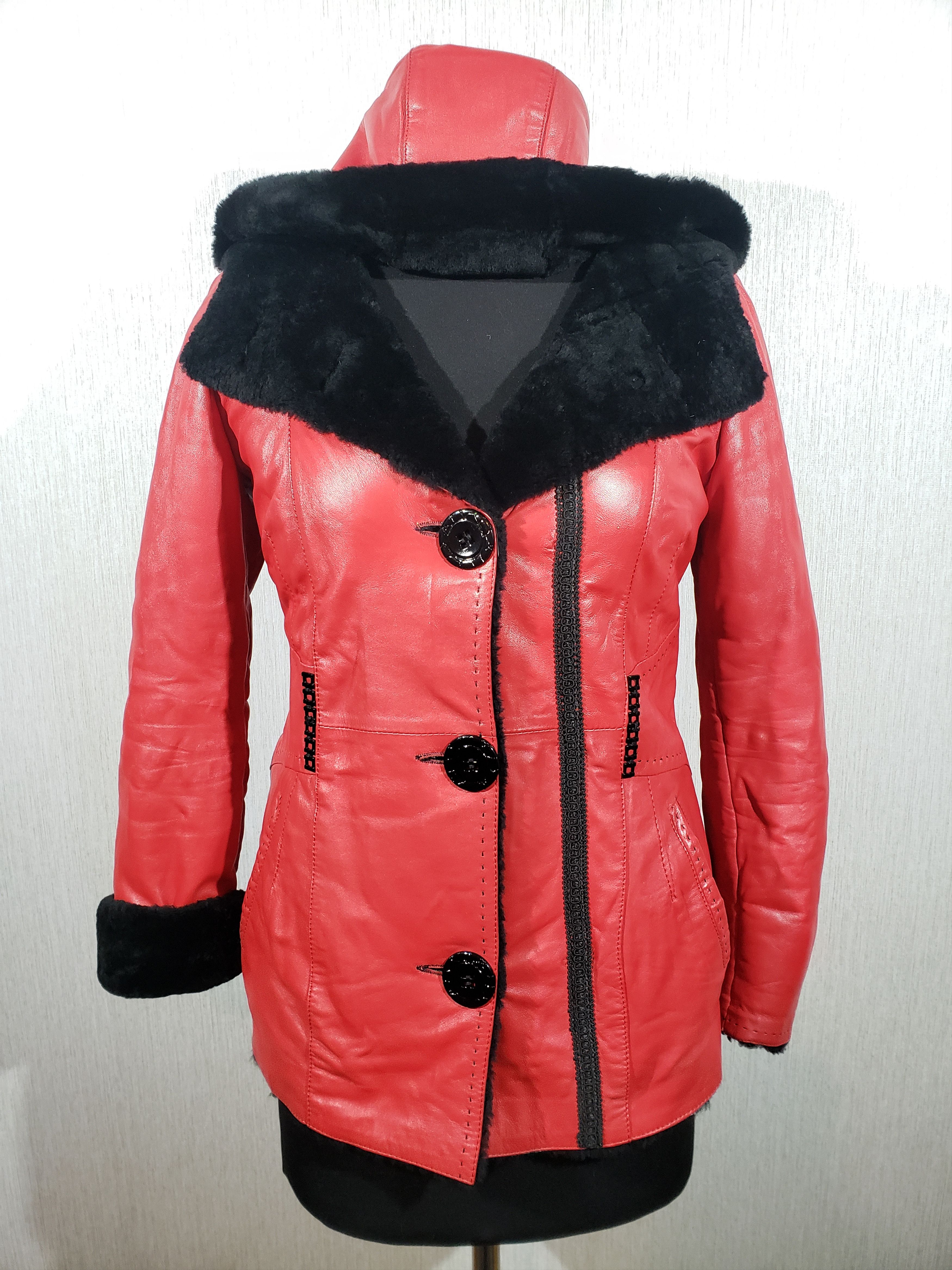 | Characteristics of goods | 34.5 in Waist circumference 88 cm MEASUREMENTS: Coat length 67 cm Such a sheepskin coat will keep you warm in cold late autumn and harsh winter. Please review our policies prior to purchase. 38. The coat fastens with large plastic buttons. 13. Occasionally some small flaws may go unnoticed, but please know we make every effort to describe and include every detail of each garment accurately.5 in Width (chest) circumference 98 cm All items are vintage and have been previously admired! Shoulders 40 cm 5 in. 26. Please ensure fit before purchasing. Seller Description Lovely red warm genuine fur sheepskin coat for women. A stylish, warm and pleasant to wear fur coat will emphasize your refined image even in severe frosts. Have questions? Message us, we are here to help! All sales are final. The coat has a reliable hood with genuine fur that will protect you from wind and snow. The coat has two convenient front pockets. A beautiful red coat for women.5 in Sleeve length 62 cm 5 in Pit to pit 49 cm 5 in Measurements are taken with garment laying flat from seam to seam.5 in Cuff circumference 24 cm The sheepskin coat is made of beautiful natural black sheep fur. 39. 24. No returns or exchanges. Use measurements to ensure the best fit. Some garments may be pinned for the best display/fit. 9. Because we want your vintage purchases to fit you perfectly, please rely on measurements, not sizing. The cuffs of the sheepskin coat can be turned up for decoration or to reduce the length of the sleeve. The outer side of the sheepskin coat is made of genuine leather and has a red color. 15. Manufacturer sizing (if available) is listed only as a reference. Red Vintage 5 in Hips circumference 100 cm Stylish women's red sheepskin coat with a hood. 19.5 in Sleeve circumference 34 cm | ||