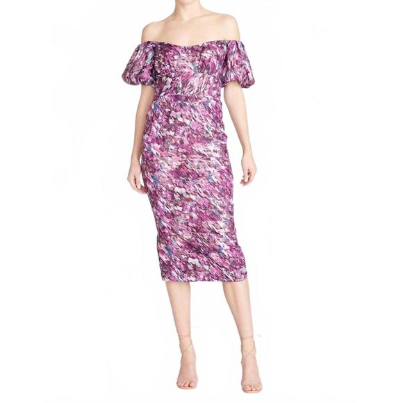 NEW ML MONIQUE LHUILLIER women's off the shoulder midi dress in painted blur Midi