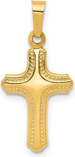 | Characteristics of goods | The approximate size is 11mm (7/16 inch) in width by 24mm (15/16 inch) in length with the bail. Details: Celebrate and honor all special occasions with jewelry of religious significance! This item does not include a chain. Additional features include- available in 14k yellow or white gold; features a hollow, 2d, curved arm design; approximate size is 11mm in width x 24mm in length; average weight is 0. This small polished flanched cross pendant available in 14k yellow or white gold features a hollow, 2-dimensional, curved arm design. Our collection of spiritually inspired designs that show faith, hope and devotion are perfect for commemorating life's milestones.43 grams. | ||